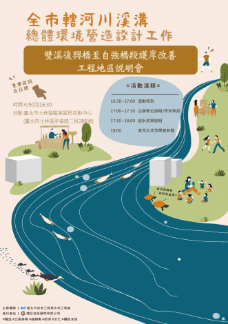 北市水利處將於115年4月9日舉辦「雙溪復興橋至自強橋段護岸改善工程地區說明會」,地點為士林區臨溪區民活動中心,誠摯邀請有興趣的民眾踴躍參與。 水利處表示,藉著這次說明會,將向市民朋友說明雙溪復興橋至自強橋段護岸改善的相關作為,如望星橋上游護岸改善方式、施工中動線及期程等,水利處期待為雙溪創造一韌性承洪的親水環境,提供市民一個安全的生活空間。 水利處河工科表示,本案為降低雙溪望星橋至自強橋段颱風豪雨造成之洪患,故針對望星橋上游溢淹段進行防洪整治及護岸修復, 防洪安全升級,有效降低颱風豪雨期間之風險,保障沿岸居民生命財產安全。 說明會將於115年4月9日星期四下午4點30分,舉辦地點在臺北市士林區臨溪區民活動中心,水利處敬邀各界關心貴雙溪的朋友們,能參與討論表達您對本案的期望。===說明會活動資訊===雙溪復興橋至自強橋段護岸改善工程地區說明會時 間:115年4月9日(四) 16:30地 點:臺北市士林區臨溪區民活動中心(臺北市士林區至善路二段286號)