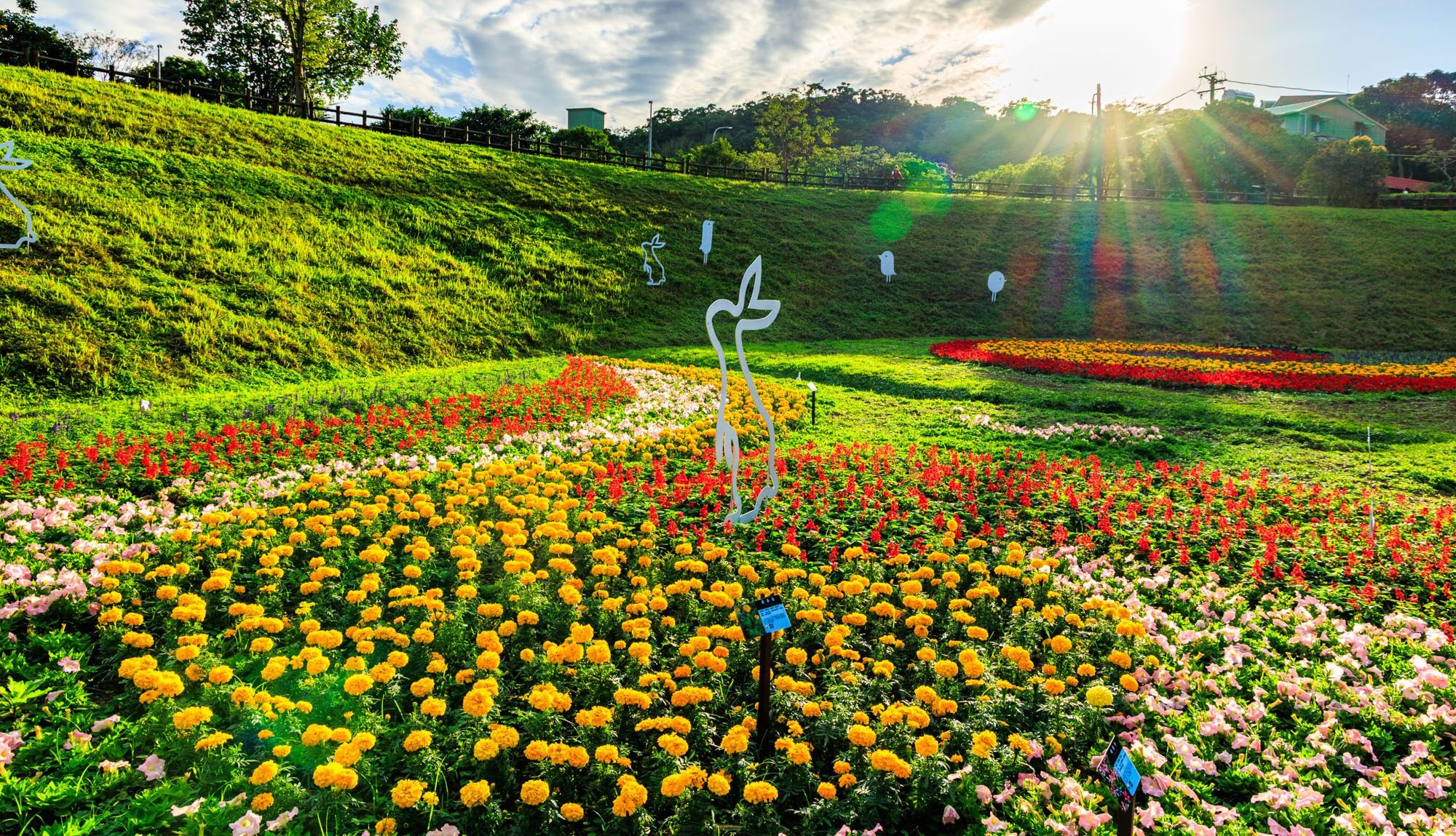 大溝溪畔冬季花海已悄然綻放,賞花期自即日起至115年2月初。花海地點就在大溝溪生態治水園區 ,鄰近捷運與公車站點,可輕鬆抵達 。 適逢元旦假期, 水利處推薦來此漫步河畔,欣賞繽紛花海交織而成的冬日美景 。 北市水利處表示,今年花海以「生態與水淵」的意象為主軸,以「水淵」的水紋意象為概念,在草地上, 花海呈現出流動、匯聚,如水流般地圖騰延展於綠坡之上;花種為一串紅、萬壽菊、矮牽牛、粉萼鼠尾草為主,色調選用紫色與紅色系的冬季草花,相互交織出繽紛的層次,帶來豐富的視覺效果,也營造出自然、活潑的氛圍。 水利處河管科指出, 除了有美麗的水紋圖案妝點這片草坪外,周邊也有許多可愛的小動物們與民眾共遊,走近可看見白鷺鷥穿梭在周邊草地與步道間、小兔子與小松鼠在花叢裡打招呼等,為整體景觀增添靈動趣味,成為民眾拍照的熱門亮點。 水利處表示,希望透過花海與地景創作結合自然生態,打造適合闔家踏青、散心、拍照的優質休憩場域。今年冬季的大溪溪畔展現出截然不同的活潑色彩,歡迎大家前來賞花、拍照、打卡,感受大溝溪花海的冬季魅力。花海交通GOOGLE地圖搜尋「大溝溪生態治水園區」https://maps.app.goo.gl/tZNfHgSQa8fELCat9公車搭乘247、267、284、630、677、紅2、紅31等公車,至「大湖」站下車,沿成功路四段324巷往河堤方向走到底向右轉,進入成功路294巷(約 280 公尺),沿成功路294巷至大湖街131巷左轉進入大湖山莊街(約 150 公尺),左轉即可抵達大溝溪生態治水園區。搭乘小3,至「大湖國小站」站下車,沿大湖山莊街往河堤方向走到底(約130 公尺),即可抵達大溝溪生態治水園區。捷運文山內湖線「大湖公園」1號出口出站,沿大湖山莊街往河堤方向走到底(約750公尺),即可抵達大溝溪生態治水園區。自行車Youbike 2.0:大湖國小站、捷運大湖公園站(2號出口)、成功公園自行開車Google導航設定「大溝溪生態治水園區」。可至「大湖公園地下停車場」停車